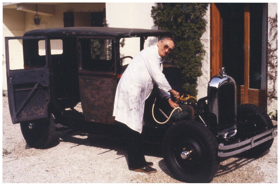 1ère restauration avec mon grand-père Louis entre 1987 et 1991, mécanique, électricité (moderne) et carrosserie peinture en 1990 et 1991, c’est la peinture de la voiture aujourd’hui.